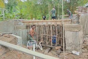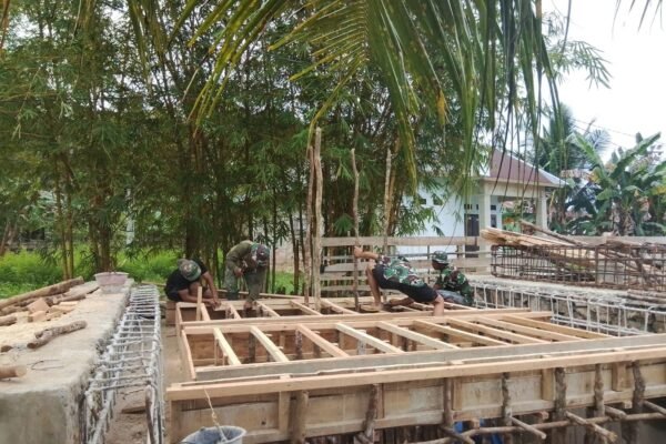 Kendari – Pembangunan jembatan di Kelurahan Sambuli terus dikebut oleh Satgas TMMD ke-127 Kodim 1417/Kendari, Senin (23/2), guna memperlancar konektivitas antarwilayah di Kota Kendari. Personel TNI bersama warga setempat bahu-membahu memasang kayu penahan mal cor sebagai persiapan pengecoran lantai jembatan. Tahapan ini menjadi fase penting sebelum struktur beton permanen dibentuk. Jembatan tersebut dinilai sangat vital…