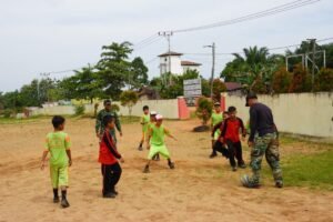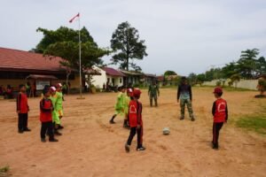 Kotawaringin Timur – Di tengah padatnya kegiatan program TMMD ke-127, anggota Satgas Kodim 1015/Sampit tetap meluangkan waktu untuk menjalin komunikasi sosial dengan anak-anak Desa Bukit Indah melalui permainan sepak bola, Jumat (27/02/2026). Permainan yang digelar di lapangan SDN 1 Bukit Indah itu berlangsung sederhana, hanya menggunakan bola plastik dan batu sebagai penanda gawang. Namun, keterbatasan…
