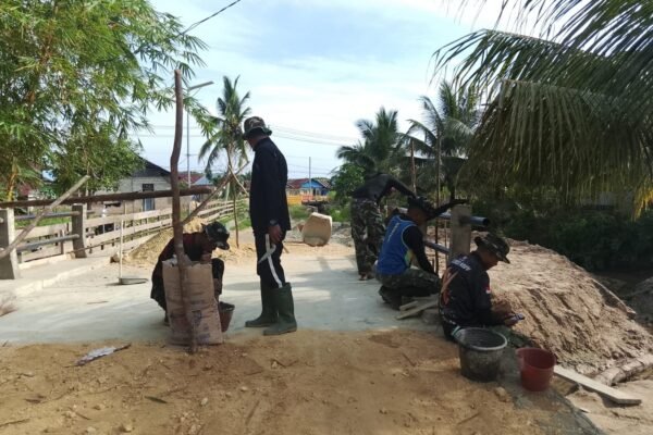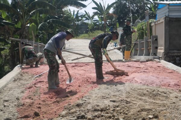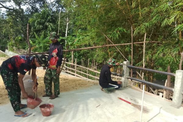 Kendari – Personel Satgas TMMD ke-127 dari Kodim 1417/Kendari terus mempercepat penyelesaian pembangunan jembatan di Kelurahan Sambuli, Kota Kendari, Senin (9/3). Pada tahap terbaru, para prajurit melaksanakan pekerjaan pengacian pada bagian struktur jembatan sebagai bagian dari proses penyempurnaan konstruksi. Pengacian dilakukan untuk merapikan sekaligus memperkuat permukaan beton sehingga struktur jembatan menjadi lebih kokoh dan tahan…