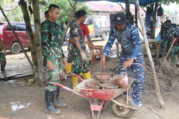 Kotawaringin Timur – Pembangunan lima unit MCK dalam program TMMD ke-127 terus berjalan secara bertahap di Desa Tri Buana, Kecamatan Telaga Antang, Sabtu (21/02/2026). Satgas TMMD dari Kodim 1015/Sampit memastikan setiap tahapan pekerjaan terlaksana dengan maksimal. Selain fokus pada pembangunan fisik, Satgas juga memperhatikan kelancaran pasokan material agar pekerjaan dapat diselesaikan sesuai jadwal. Pendropan material…