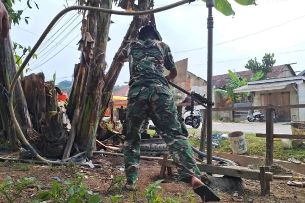 Kendari – Sinergi antara Satgas TMMD ke-127 dan masyarakat kembali terlihat dalam pembangunan talud di wilayah Kota Kendari, Kamis (26/2). Anggota Satgas bersama warga bahu-membahu mengangkat batu, mencampur semen, dan menyusun material secara rapi agar konstruksi talud memiliki daya tahan jangka panjang. Kerja sama yang solid ini menjadi kunci utama percepatan progres pembangunan di lapangan….