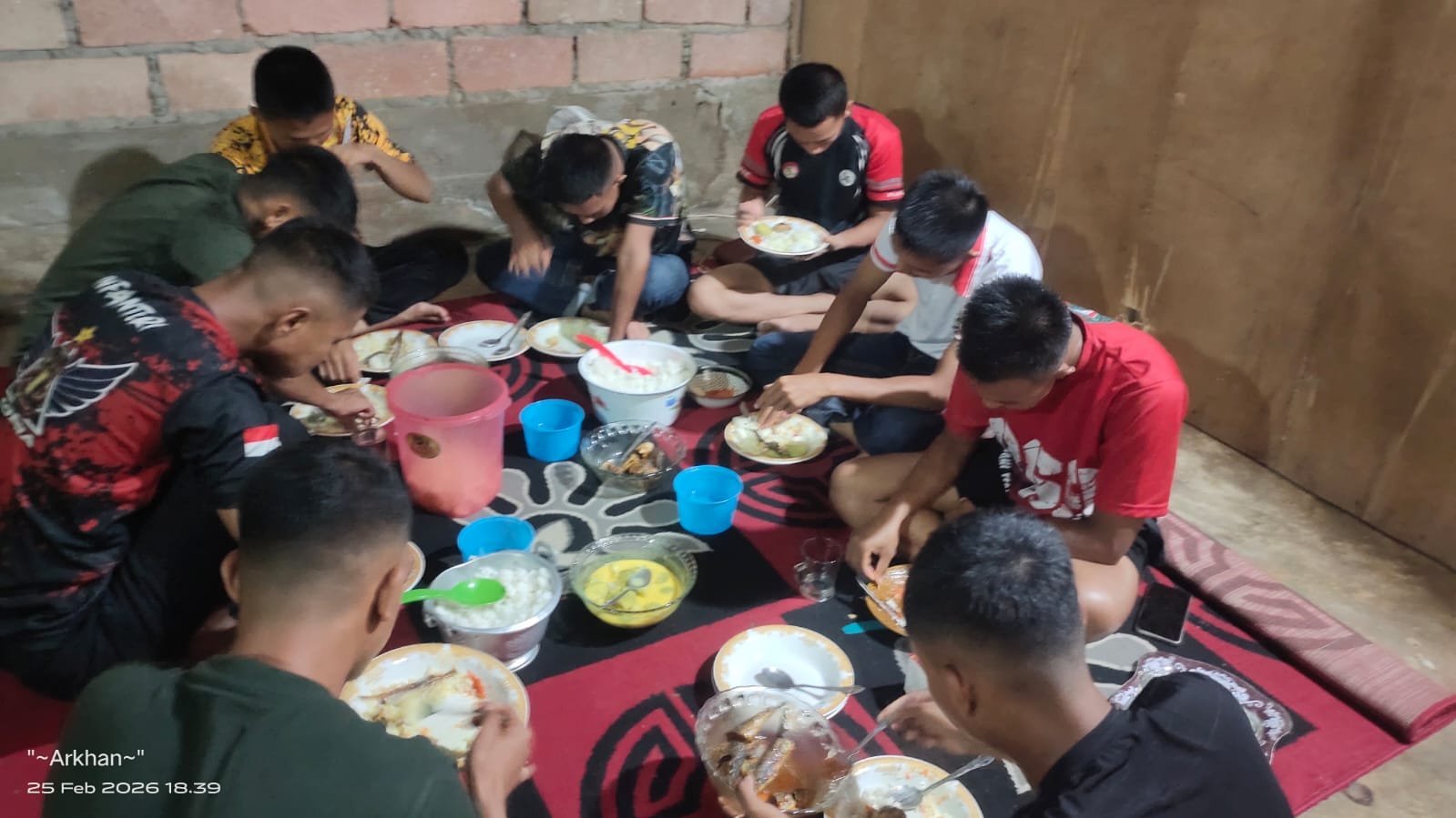 Meski berada jauh dari keluarga, suasana kekeluargaan terasa kental saat para anggota Satgas menyantap hidangan sahur sederhana secara bersama-sama.