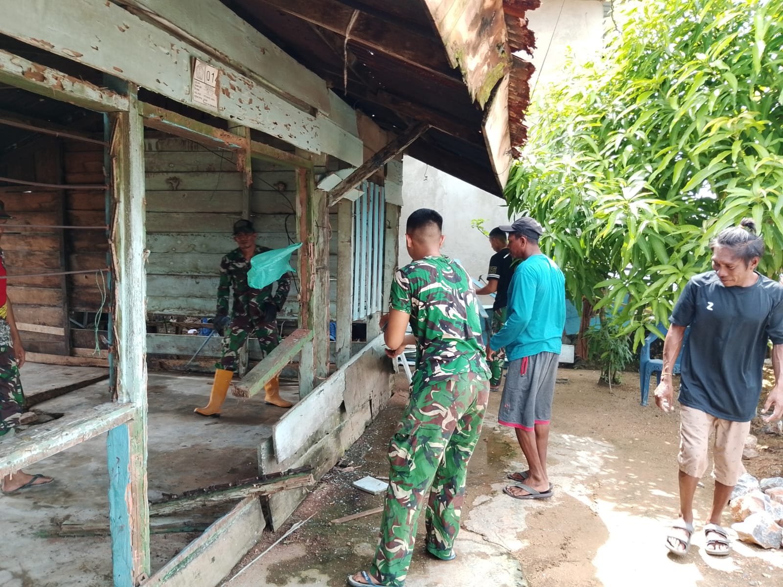 Kendari – Program TNI Manunggal Membangun Desa (TMMD) ke-127 Kodim 1417/Kendari membawa harapan baru bagi keluarga nelayan di Kelurahan Petoaha, Kecamatan Nambo. Satgas TMMD mulai melakukan pembongkaran Rumah Tidak Layak Huni (RTLH) milik Ibu Natia sebagai langkah awal pembangunan rumah layak huni, Kamis (12/2).