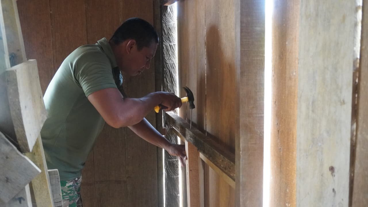 Di Desa Tri Buana, Kecamatan Telaga Antang, personel Satgas bersama warga bahu-membahu menyelesaikan berbagai tahapan pekerjaan, mulai dari pemasangan dinding, perbaikan atap hingga tahap pengecatan. Tanpa mengenal waktu istirahat, prajurit tetap fokus agar rumah penerima manfaat segera dapat ditempati dengan layak.