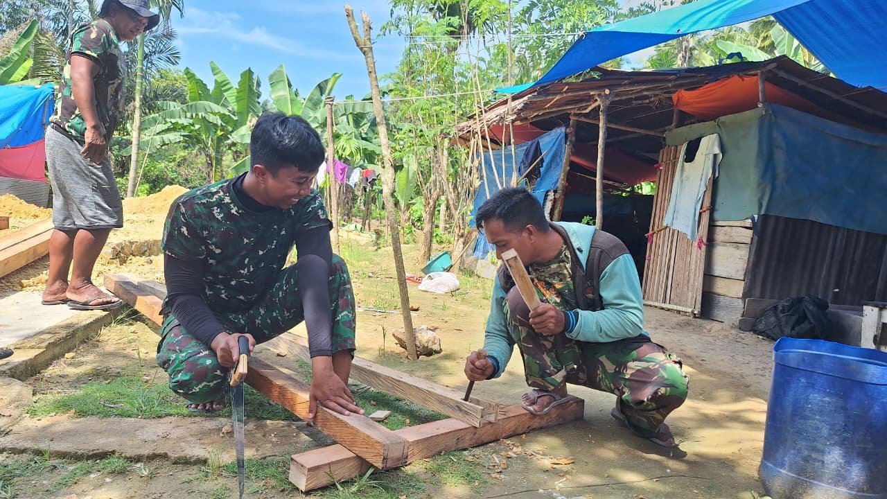 Setiap ketukan pahat yang terdengar bukan sekadar proses konstruksi, melainkan simbol kemanunggalan TNI dan rakyat dalam membangun hunian yang lebih layak bagi keluarga kurang mampu.