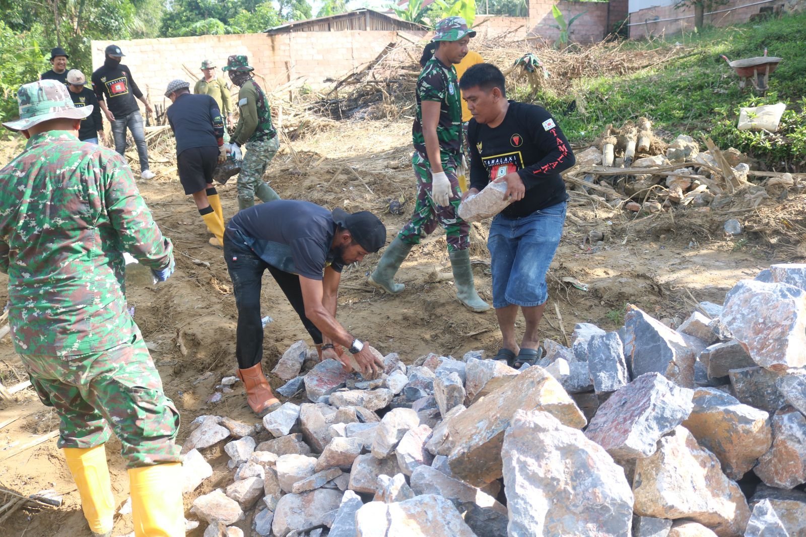Keterlibatan para pemuda dalam kegiatan gotong royong menunjukkan tingginya kepedulian masyarakat terhadap pembangunan daerahnya. Mereka bersama personel TNI bekerja tanpa sekat, saling berbagi peran dalam mengangkut serta menata material konstruksi.