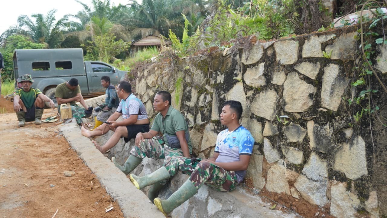 Meski aktivitas fisik cukup menguras tenaga, anggota Satgas tetap menjaga komunikasi sosial dengan masyarakat. Interaksi sederhana tersebut justru memperkuat kedekatan emosional antara TNI dan warga.