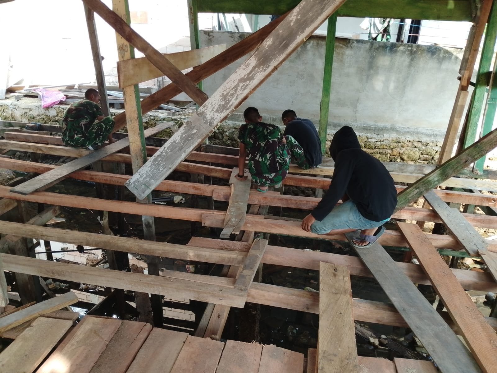 Pada tahap ini, prajurit TNI bersama warga setempat memusatkan perhatian pada perakitan besi tulangan yang menjadi fondasi utama kekuatan badan jembatan. Di bawah tenda darurat, mereka tampak teliti mengikat dan menyusun rangka besi sesuai ukuran dan spesifikasi teknis konstruksi.