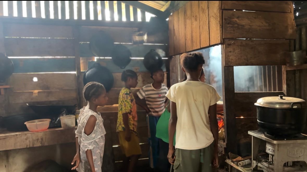 Terlihat antusiasme masyarakat, terutama anak-anak yang baru pulang sekolah. Dengan penuh semangat, mereka ikut membantu di dapur, mulai dari menyiapkan bahan hingga merapikan peralatan masak.