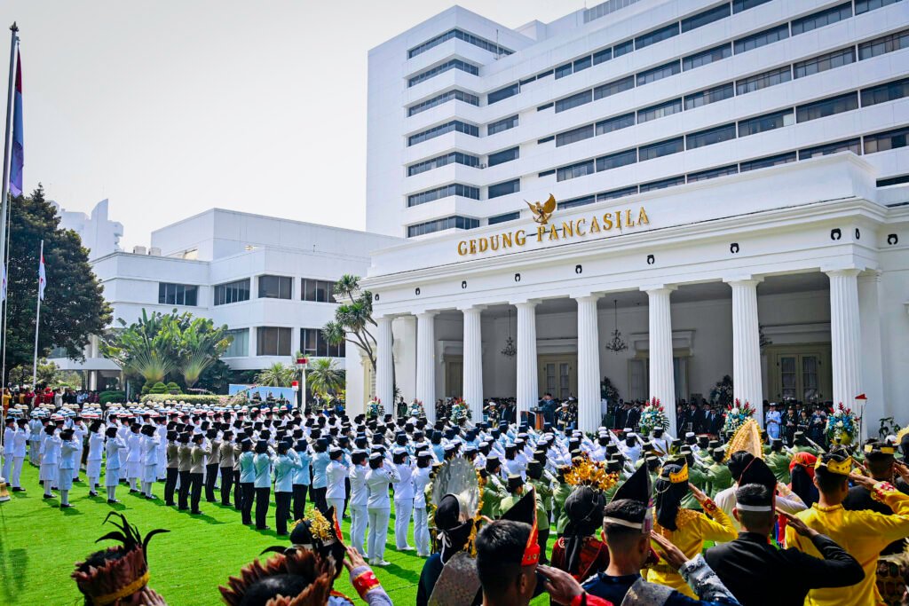 Upacara berlangsung dengan tertib dan penuh khidmat, mencerminkan penghormatan tinggi bangsa Indonesia terhadap Pancasila sebagai fondasi kehidupan bernegara. (BPMI Setpres)