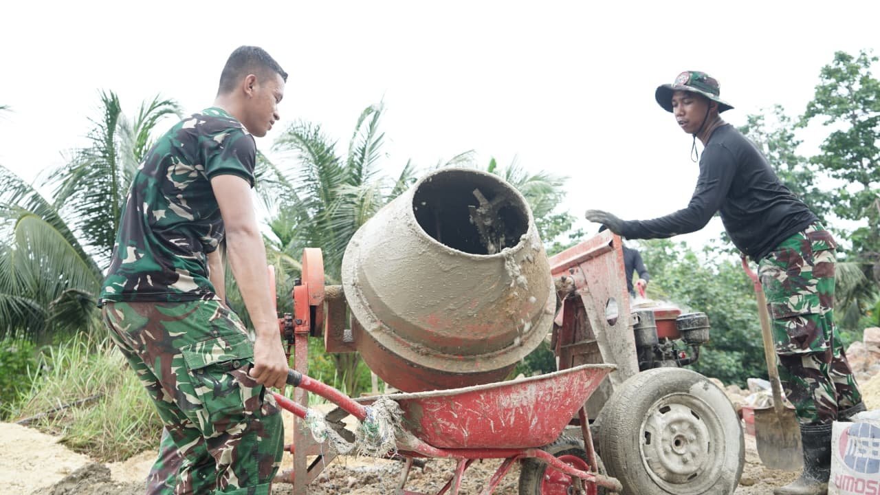 Ketelitian dalam proses pencampuran beton sangat menentukan kekuatan struktur bangunan. Oleh karena itu, personel Satgas memastikan setiap tahapan pengerjaan dilakukan secara profesional demi menghasilkan fasilitas umum yang kokoh dan tahan lama.