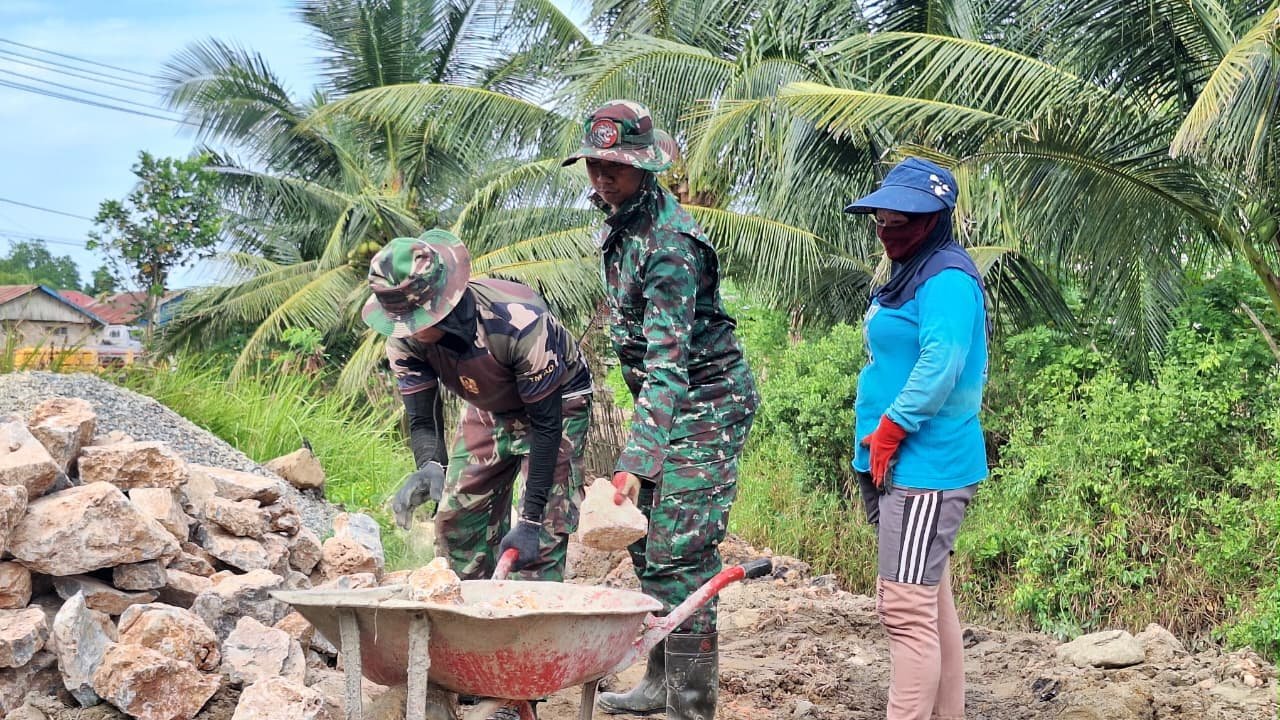 Kendari – Semangat kebersamaan terlihat kuat dalam pelaksanaan TNI Manunggal Membangun Desa (TMMD) ke-127 di Kelurahan Sambuli, Kota Kendari, Rabu (11/2). Tidak hanya personel Satgas TMMD, para ibu-ibu setempat juga turut turun langsung membantu pengerjaan pembangunan dengan mengangkut material batu di lokasi kegiatan.