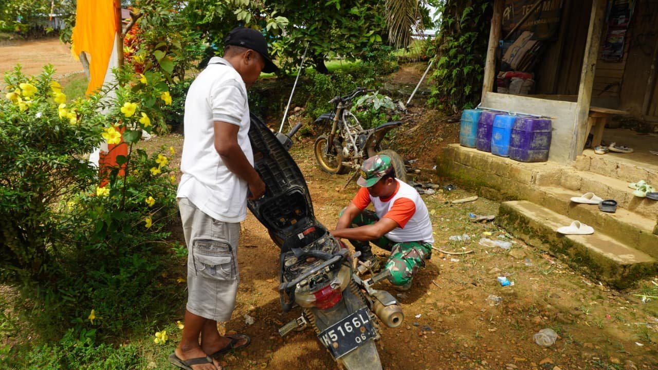 Kali ini, Koptu Iwan membantu memperbaiki sepeda motor milik Mahmud, warga Desa Bukit Indah. Kerusakan kendaraan tersebut sempat menghambat aktivitas Mahmud sehari-hari.