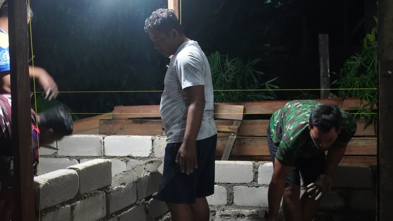 Kebersamaan tersebut tidak hanya terlihat saat mengerjakan sasaran fisik pembangunan, tetapi juga saat waktu istirahat. Anggota Satgas dan warga duduk santai sambil berbincang, menciptakan suasana penuh keakraban dan kekeluargaan.