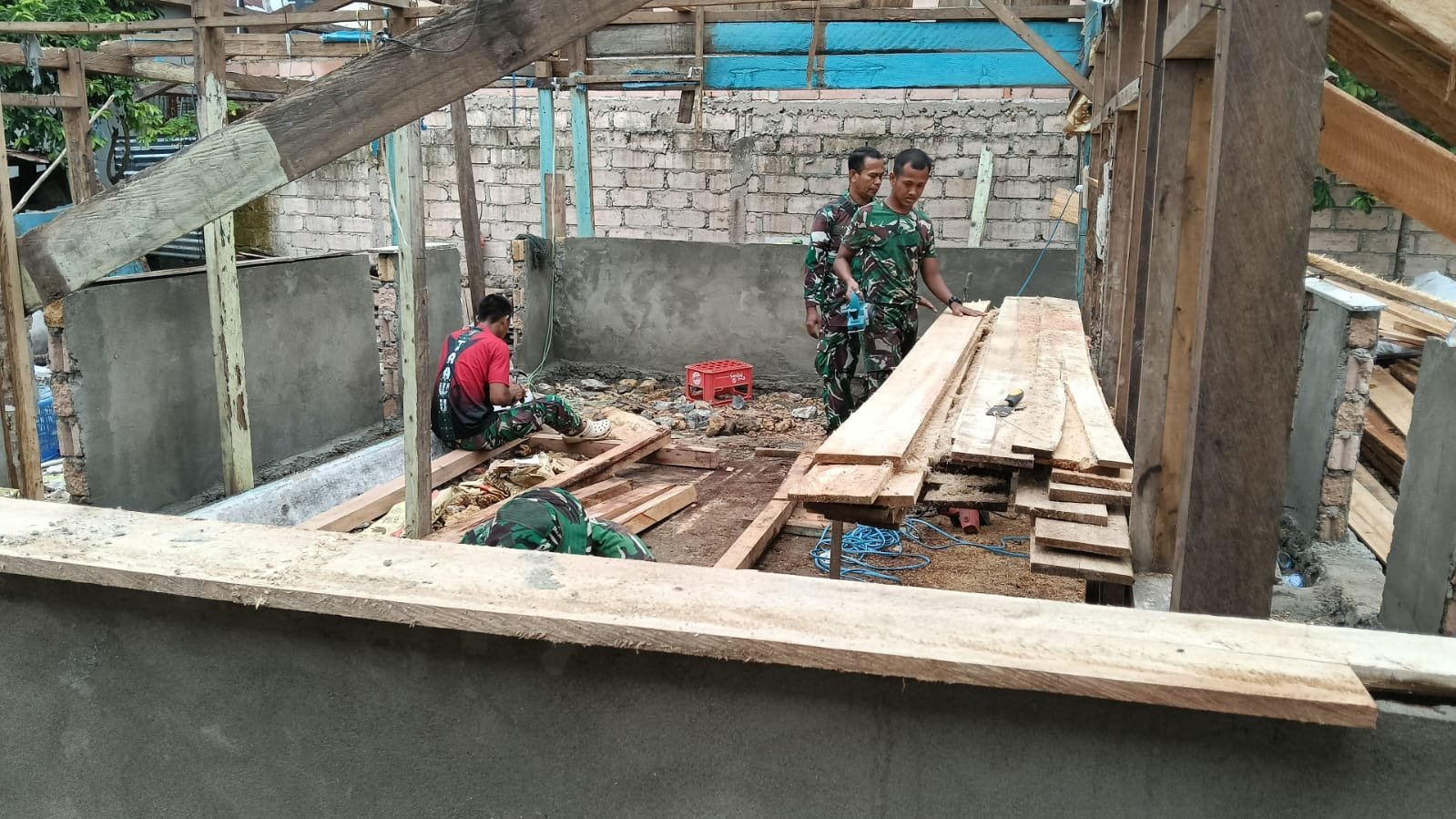 Kehadiran prajurit dengan keterampilan teknis mumpuni ini mempercepat tahapan renovasi yang kini memasuki fase krusial. Proses pengerjaan berjalan lebih efisien tanpa mengurangi standar kualitas bangunan.