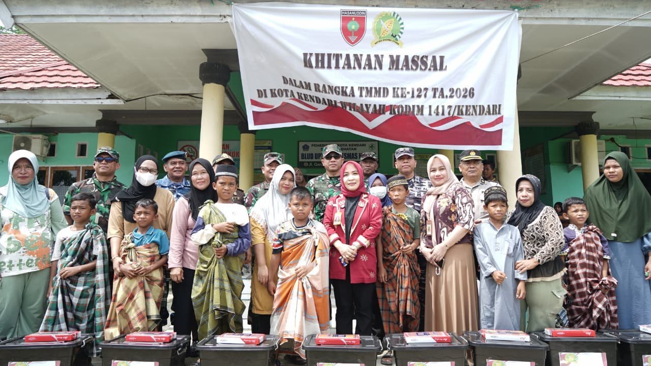 Konawe – Program TNI Manunggal Membangun Desa (TMMD) ke-127 tidak hanya fokus pada pembangunan fisik, namun juga menyentuh sisi sosial kemasyarakatan. Satgas TMMD ke-127 Kodim 1417/Kendari menggelar kegiatan sunatan massal bekerja sama dengan Puskesmas Nambo, Kamis (26/2).